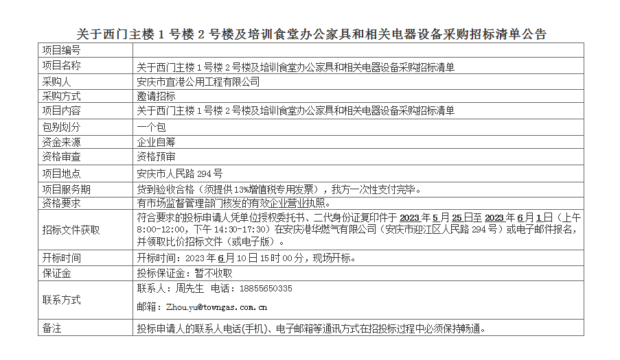 關(guān)于西門主樓1號(hào)樓2號(hào)樓及培訓(xùn)食堂辦公家具和相關(guān)電器設(shè)備采購招標(biāo)清單公告