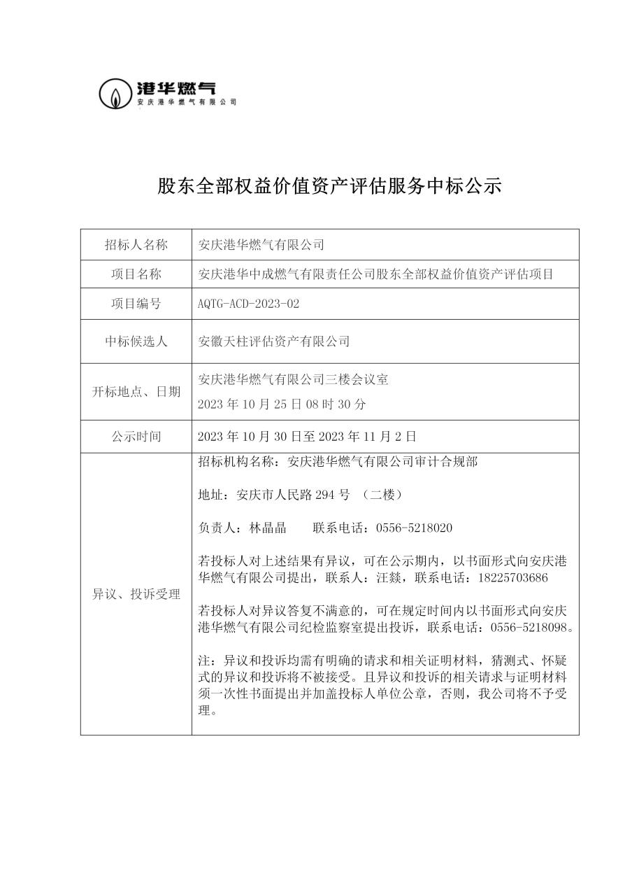 股東全部權(quán)益價值資產(chǎn)評估服務(wù)中標(biāo)公示