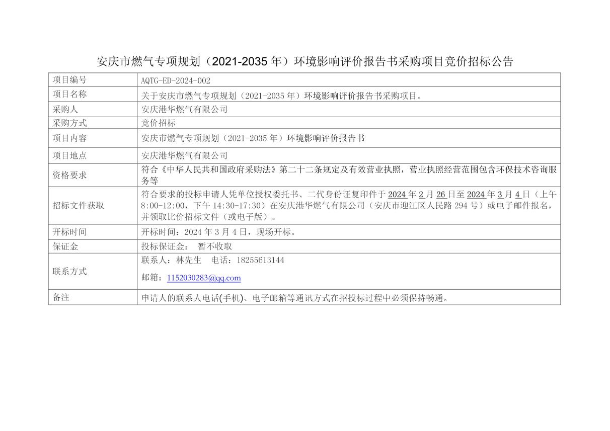 關(guān)于安慶市燃?xì)鈱m?xiàng)規(guī)劃(2021-2035年)環(huán)境影響評(píng)價(jià)報(bào)告書采購(gòu)項(xiàng)目公告